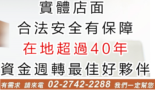 下一篇:臨時急用周轉,借錢找無管道,想用汽車借貸,上班族缺資金,當舖