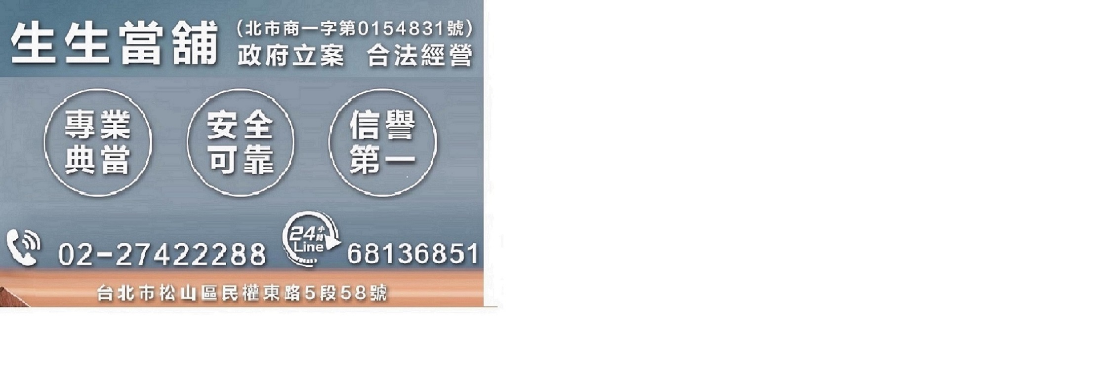 想找合法的資金周轉管道,台北合法當舖提供汽機車借款,生生當舖服務大台北典當現金週轉-專辦:汽車借款、機車借款、重機借款,合法當舖質借服務本當舖在地經營多年,手續簡便為無數民眾快速解決資金需求,是北部票選最優質的台北當舖。汽車機車借款>>法定利息,迅速撥款,親切保密,合法執照,週轉安全有保障。台北當舖-松山當舖-內湖當舖-松山汽機車借款-內湖汽機車借款。
